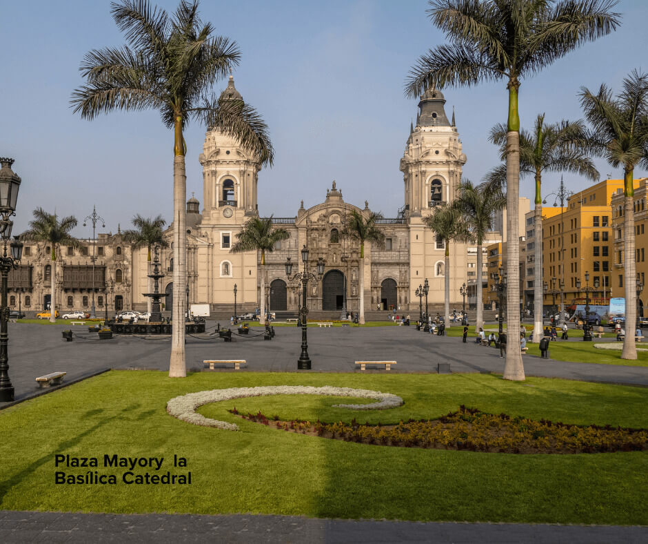 Continuaremos nuestro recorrido hacia el Centro Colonial, observando la Plaza Mayor, Palacio de Gobierno, la Basílica Catedral, Palacio Arzobispal y Municipalidad de Lima.
